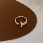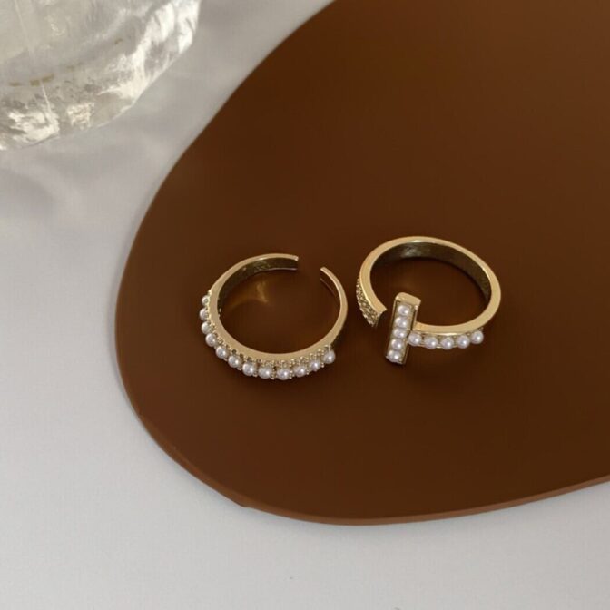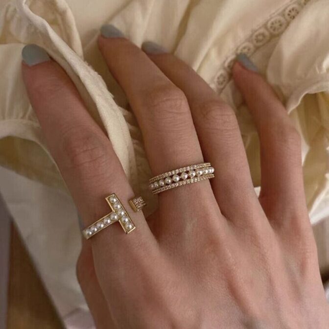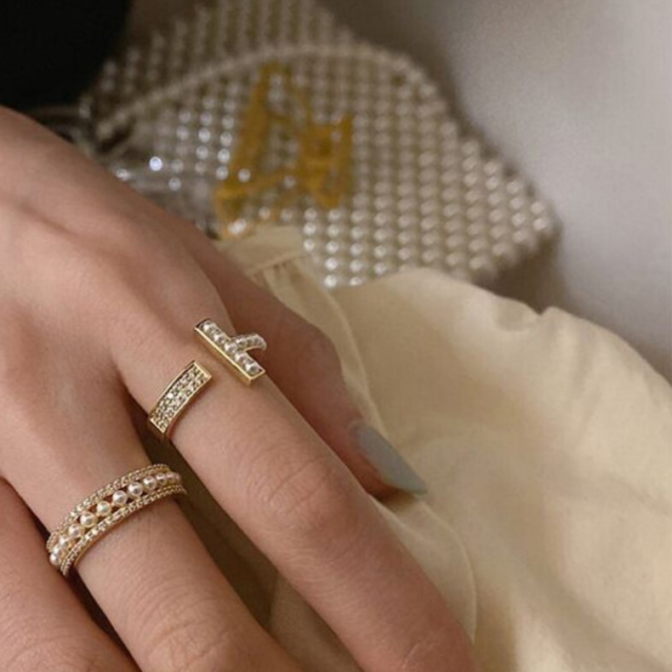 小さなパールとクリスタルストーンが素敵な T字リングです。